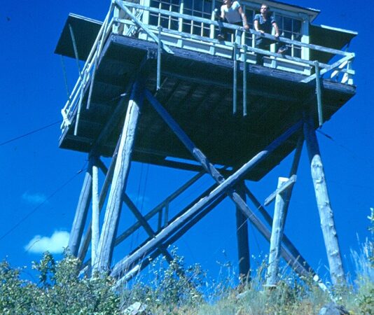 Hike-InBurnt DownElevation: 6762′St. Joe National Forest History 1924 – Established as a camp1933 – L-4 tower built1953 – L-4 tower atop a concrete base 1967 – Staffed by Tom Boehr (*Kellogg Evening News)1972 – Last Staffed1984 – Burnt down from lightning *Charlie Kevis staffed Simmons Peak sometime in the early 1930s. *...