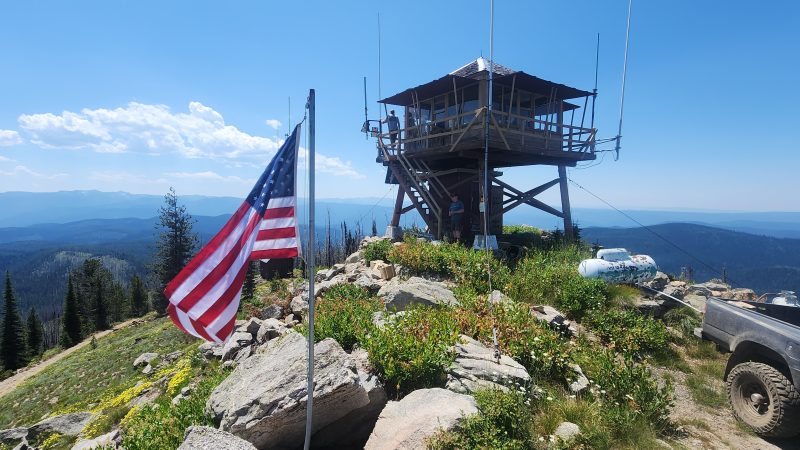 Drive-UpStaffedElevation: 7135ftNez Perce National Forest HISTORY 1914 – Camp established 1914 & 1915 – Staffed by George Watkins (*Idaho County Free Press) 1916 – Staffed by George Watkins & Levi Colgrove. Both struck by lightning (not fatal). (*Grangeville Globe) 1922 – 10×10 Frame cab built 1922 – Staffed by Murle Markham...