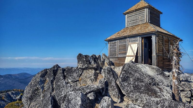 St Joe Baldy Lookout, abandoned in the 1980s, has a fantastic view overlooking the St Joe River and the St Joe National Forest.