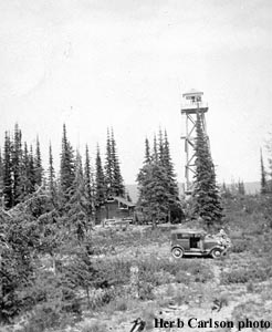 1923 – Log ground cabin with 6×6′ cab on 40′ pole tower