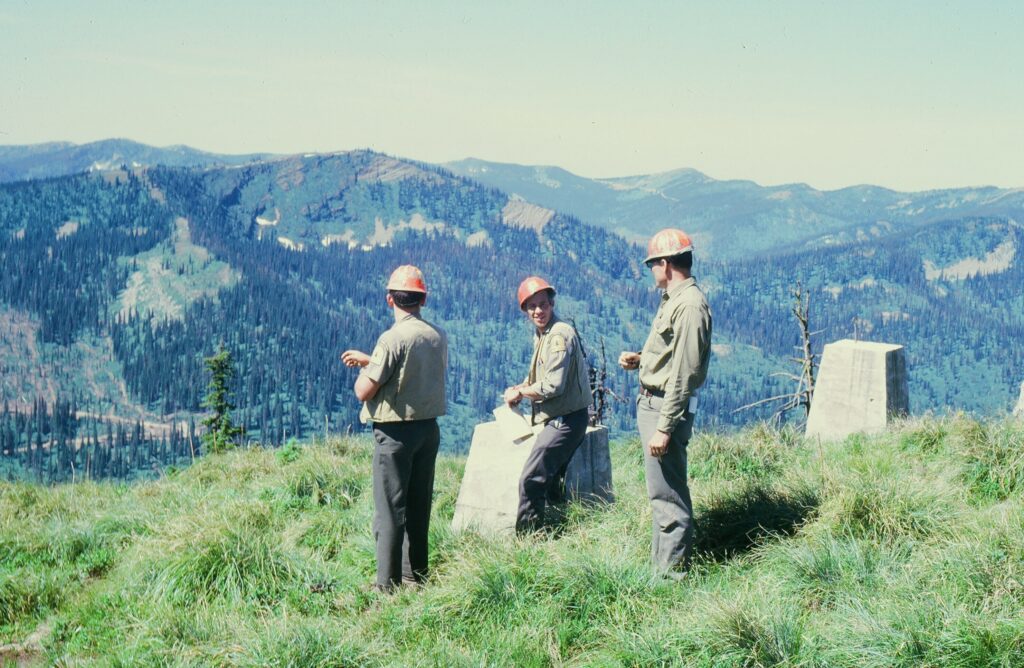 1970 photo, Bob Shackleford, Larry Stone and Kenops (first name?), US Forest Service, Clark Fork Ranger District. Stan Meyers Collection.