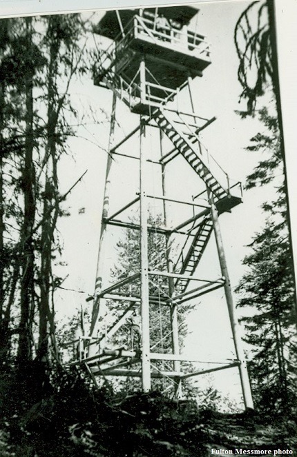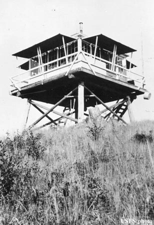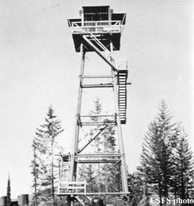 1934 – 10′ Pole tower L-4 built on southwest summit. 62′ pole L-6 patrol tower constructed 1/4 mile to the east.