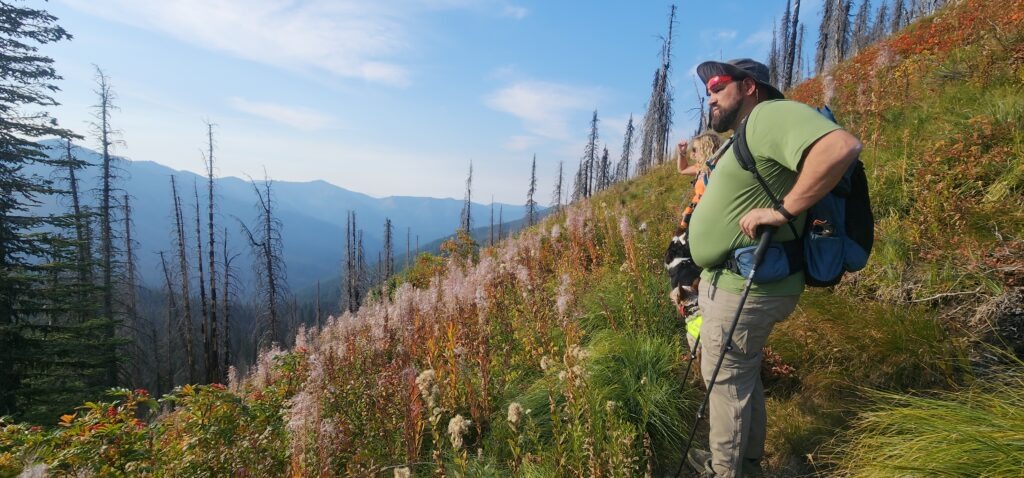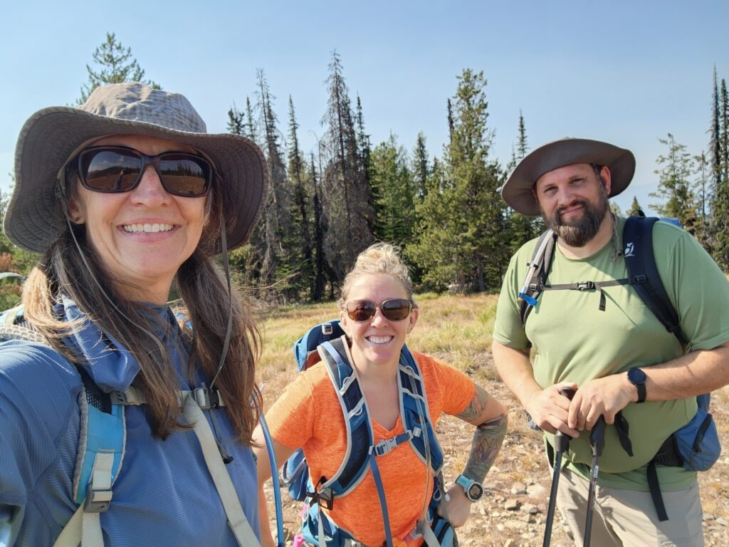 Cat, Heather and Billy at Trout Peak Lookout site, September 2025.