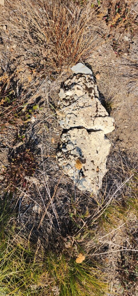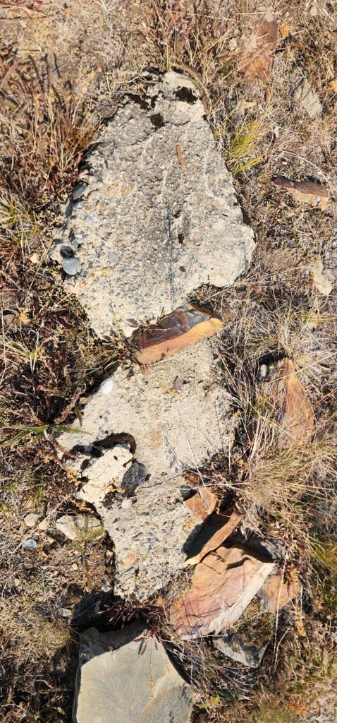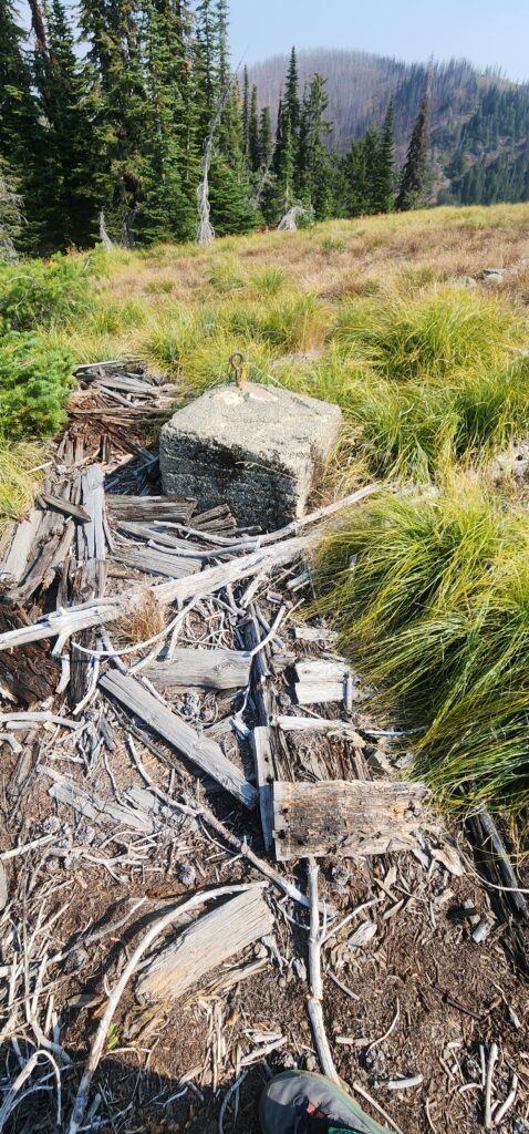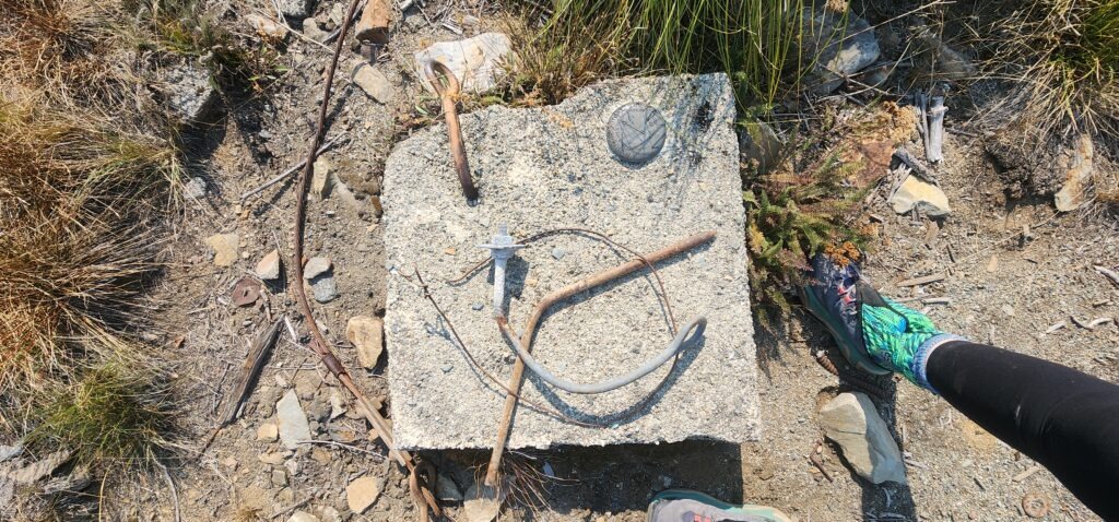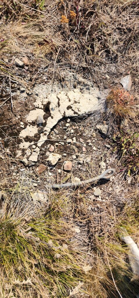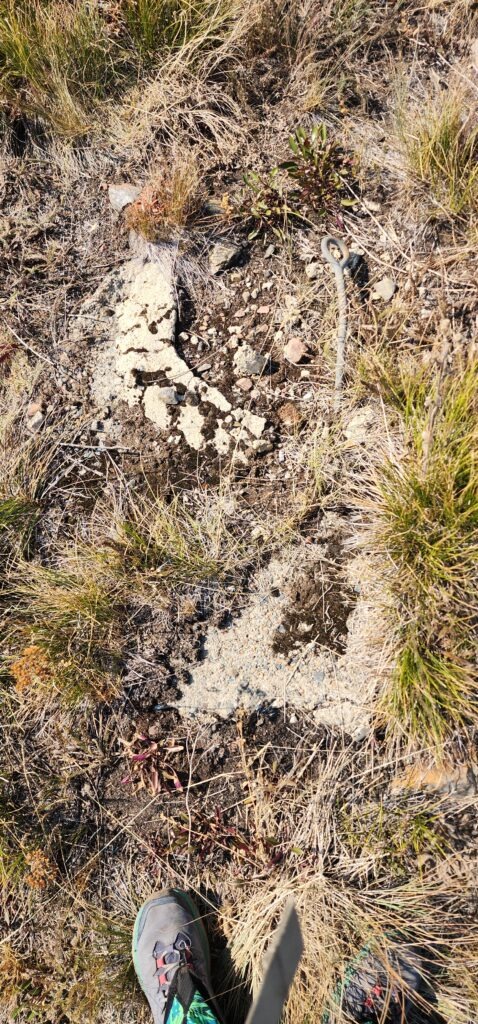 And we also found what we believe to have been the site of an earlier lookout. Nearby the first location we found 3 tie downs and very old crumbling cement blocks. We assume, because of the tie downs, that this would have been another tower, however without anything to confirm we also need to assume this could have been a ground cabin.