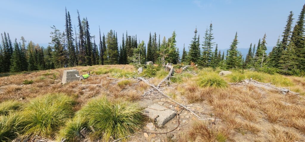 But once on top of the mountain we quickly realized – holy cow – there are cement footings! There was a lookout tower here – NOT just a fire finder! There MAY have been a celebratory dance – we cannot confirm or deny.