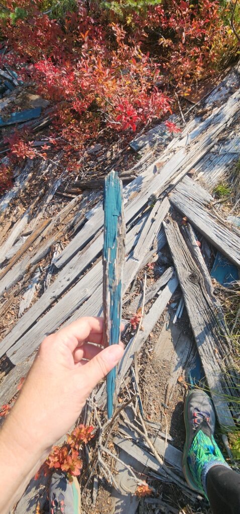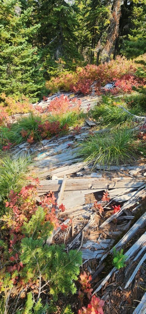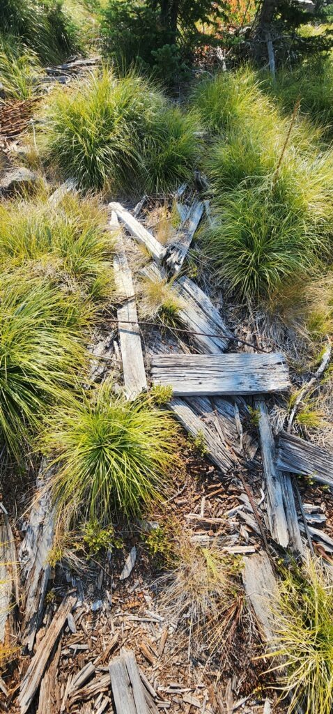 We also found that the south side of the peak was covered with lumber, some of which could still be easily identified as the stairs and other sections of the lookout.