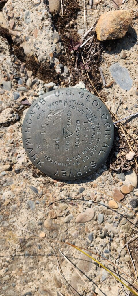 And finally we found 2 benchmarks dating to 1947 – one of which was on one of the newer cement footings – so we are guessing that 2nd larger lookout tower was built about that time.