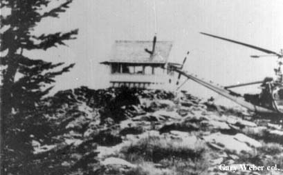 Located in the Selway-Bitterroot Wilderness, Diablo was developed with a cabin in 1926, replaced with an L-4 cab in 1930. The present 10′ concrete base with R-6 flat cab, built-in 1965. It was restored a few years ago and is staffed by a group of volunteer lookouts.