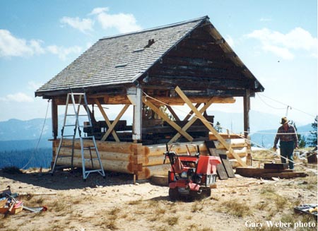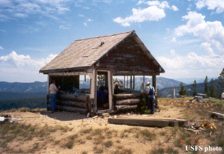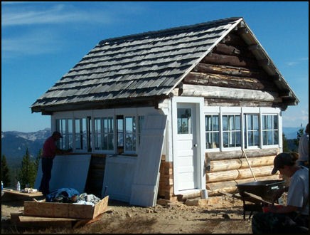 There were only a few of the famed “Nez Perce L-5” log cabin lookouts built, and Square Mountain is one of the best of the last on the Nez Perce National Forest. Built in 1931 and in service until the 1970s, the cabin is being carefully restored by the regional Historic Preservation Team and a Pass Passport In Time project with lightning protection materials from the Idaho/Montana FFLA chapter. – The National Historic Lookout Register