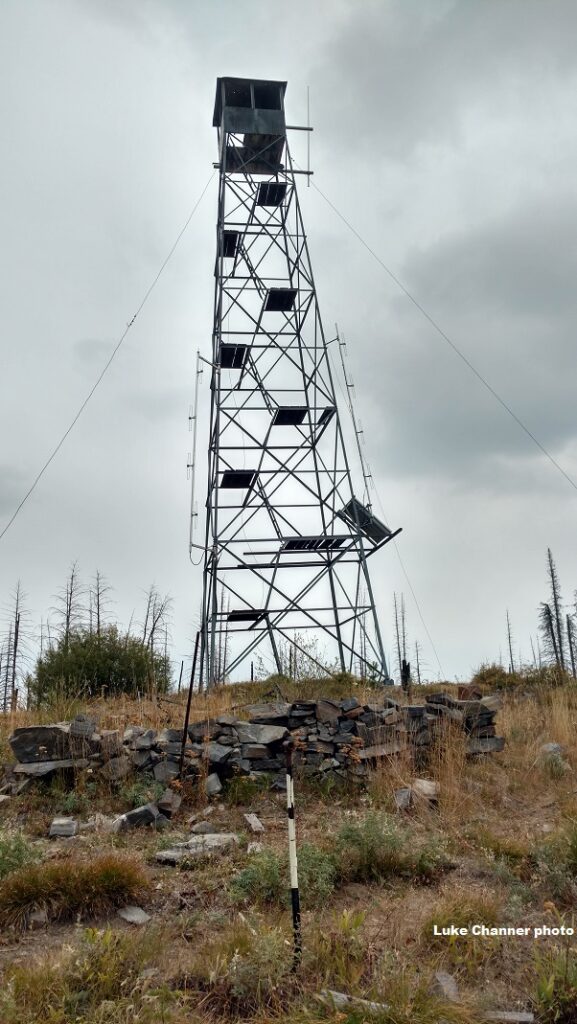 Ulysses Mountain consisted of log cabin living quarters and a 60-foot Aeromotor steel tower. The most recent pictures I could find before my visit were from 2012, and at that time, the cabin was still there. As I drove up the mountain’s east side, we transitioned from a healthy forest into a burn-scarred hillside, and my heart sank. Sure enough, my visit was too late, and the cabin no longer stands.