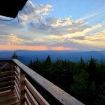 We rented Bald Mountain in the summer of 2022. Our overall impression of it is that the exterior is very nice, the catwalk and stairs are in wonderful shape and all the windows work (we cant say this about a few others out there). However the interior is not what we’ve been accustomed to with lookout rentals – there is no center adelaide for the fire finder, the ceiling has been opened up this give a feeling of much more space inside the cab. There is also a pump sink and range top.