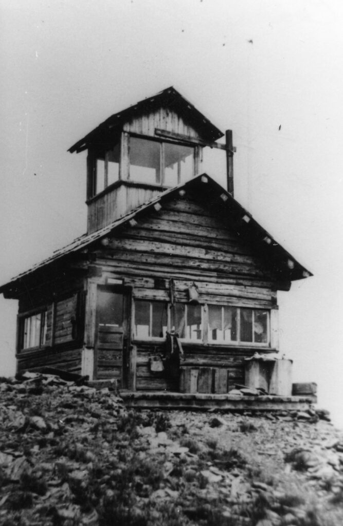 19?? – John “Red” Dennis staffed the lookout. He was the infamous lookout that got the extra bacon rations. Story available in Harships & Happy Times by Bert Russel and Fire Lookouts of the Northwest by Ray Kresek.