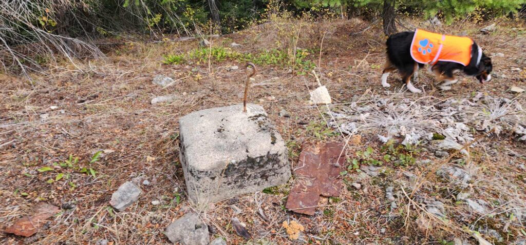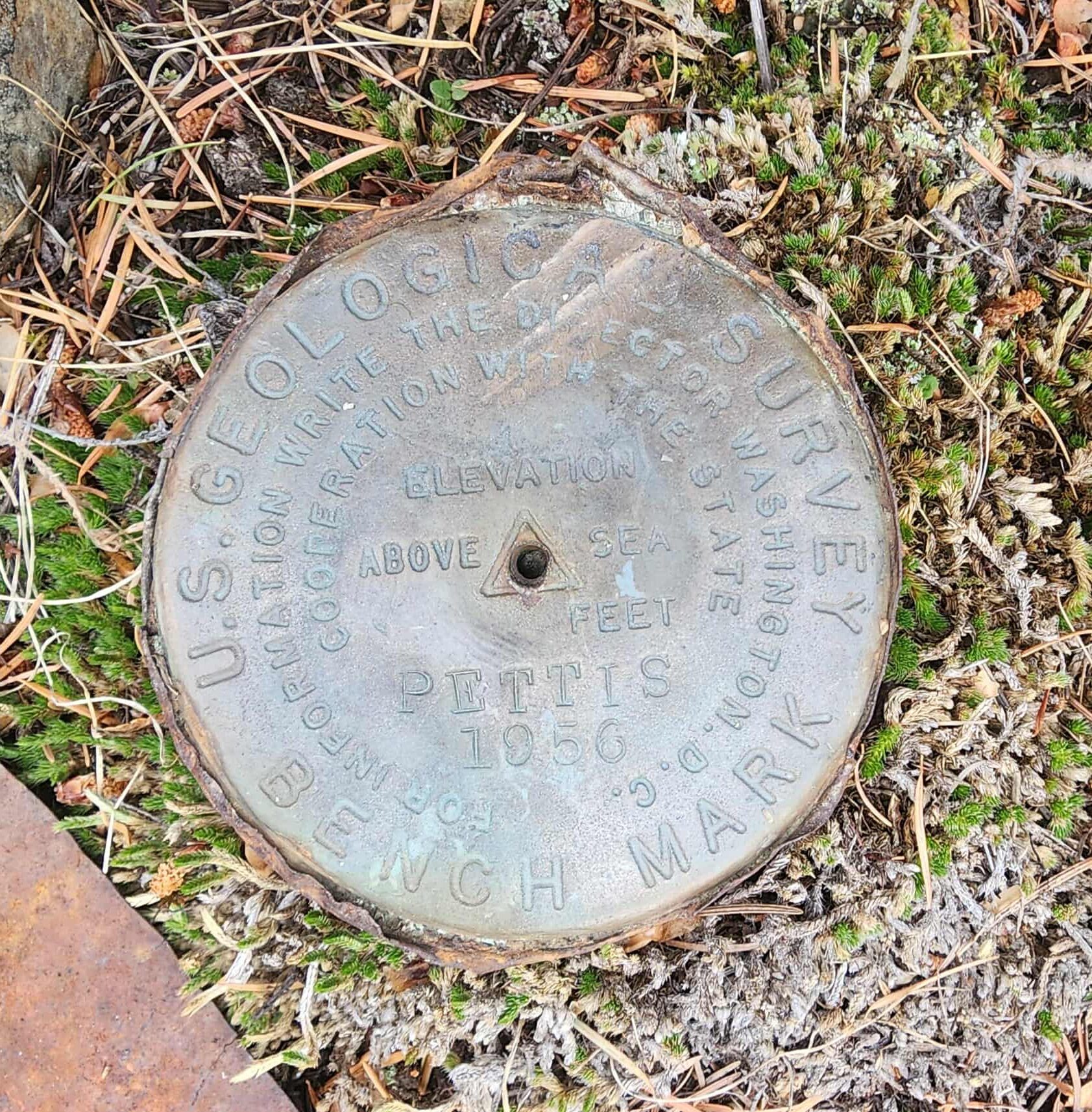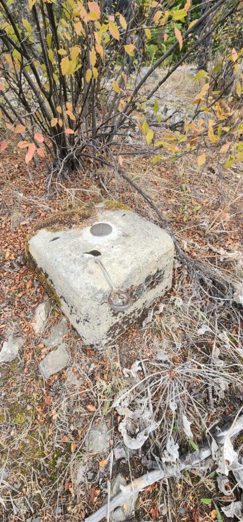 Two benchmarks were spotted as well. However, they are dated 1956. According to the inventory history this tower was destroyed in 1953 – its not unheard of that they would have been placed on old cement but just seems odd to us. We’ll continue to research.
