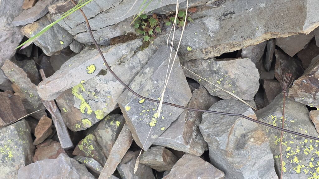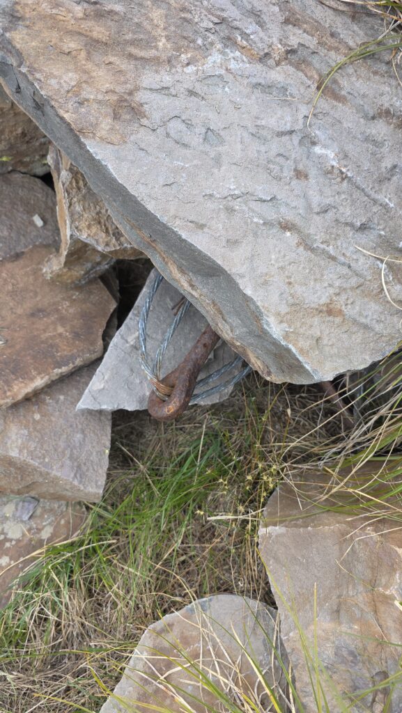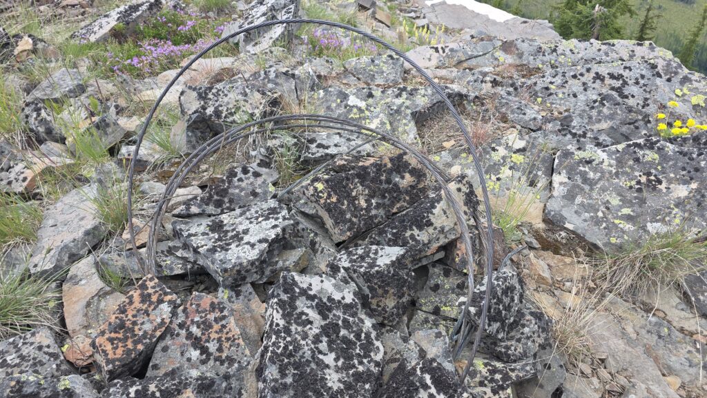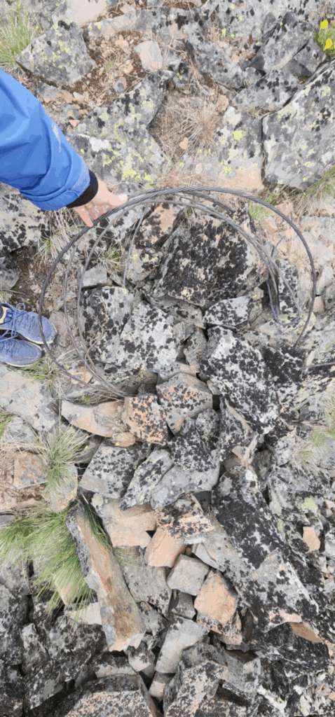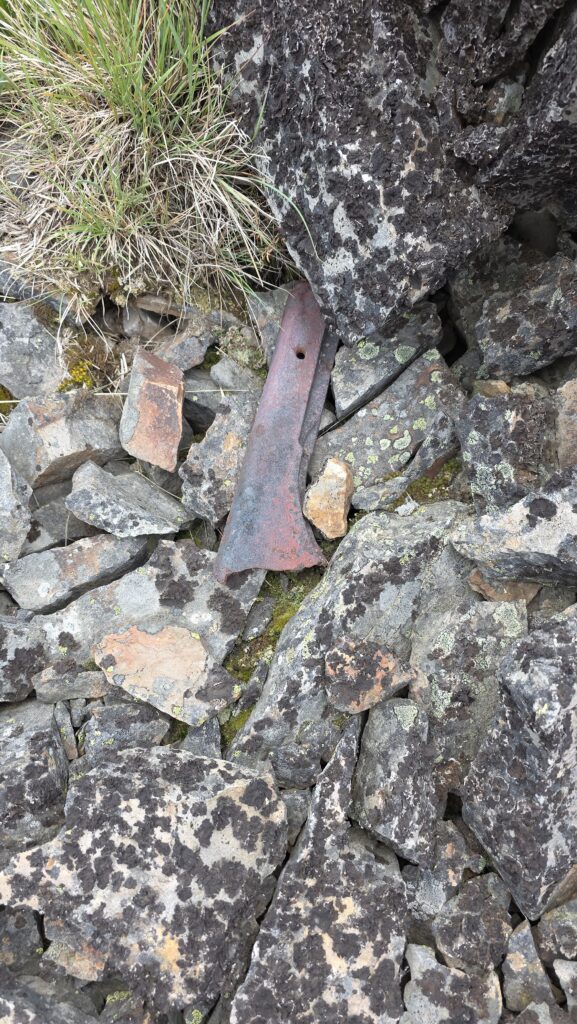 Nearby, we also found a stacked rock foundation for what may have been a second building. We’re unsure whether this was a storage structure or possibly an earlier or lookout; it’s different than the one shown in historic photos of the D-6.